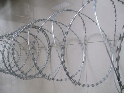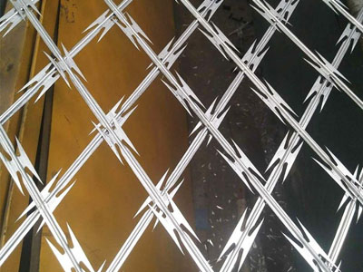 刀片刺網(wǎng)又叫刀片刺繩,是一種近年發(fā)展起來的防護(hù)、阻隔才能較強(qiáng)的新式防護(hù)產(chǎn)品。是一種新式防護(hù)網(wǎng),刀片是用耐腐蝕性的熱鍍鋅鋼板或不銹鋼板做刀片資料,